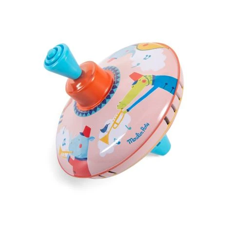 Der Moulin Roty Brummkreisel lässt sich auch schon von kleinen Kindern spielend leicht bedienen. Er dreht sich nicht nur rasend schnell im Kreis, sondern spielt dabei auch eine Melodie ab. Hinzu kommt, dass der Kreisel von Moulin Roty mit einem farbenfrohen Motiv verziert ist.