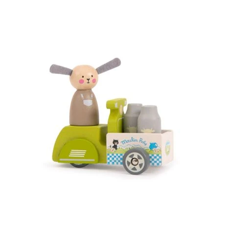 Der Moulin Roty Milchwagen mit Figur eignet sich hervorragend zum Spielen. Das Set ist sogar mit zwei kleinen Holzkannen ausgestattet, die auf der Ladefläche des Transporters untergebracht werden können. Außerdem kann die Figur mit den Hundeohren hinter das Steuer des Moulin Roty Milchwagens gesetzt werden.