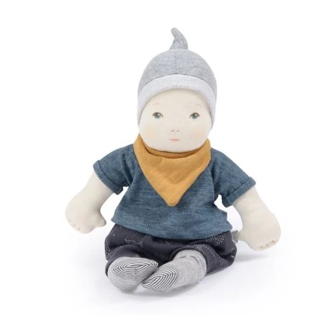 Mit ihrer herrlich weichen Beschaffenheit eignet sich die Puppe Bub von Moulin Roty auch hervorragend für Kinder ab der Geburt. Sie bietet sich zum Spielen oder Schmusen gleichermaßen an. Die Puppe von Moulin Roty trägt Babykleidung, ein Halstuch und eine Mütze.