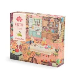 Erinnert an Gemütlichkeit und Beisammensein: das Moulin Roty Puzzle. Das Motiv zeigt ein schönes Zuhause mit gedecktem Tisch, bunter Küche und viel Freude mit den Liebsten. Schritt für Schritt entsteht aus den Moulin Roty Puzzleteilen ein zauberhaftes Bild.