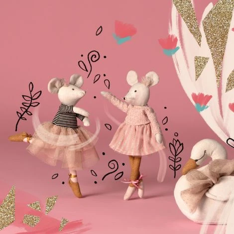 Ihre Liebe zum Ballett bringt diese Moulin Roty Spielpuppe perfekt zum Ausdruck. Das zarte Outfit ist einfach wunderschön und bereitet beim Tanzen umso mehr Freude. Natürlich kuschelt die Moulin Roty Maus auch gern – jede Primaballerina braucht ihre erholsamen Pausen.